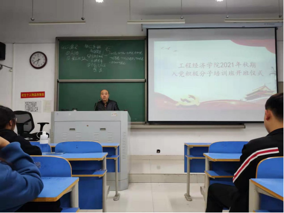 为进一步做好入党积极分子培训工作,加强对入党积极分子的教育和培养,10月18日,pp电子游戏平台官网学生党支部在弘新楼2312C教室举行2021年秋期入党积极分子培训班开班仪式暨第一次党课培训。pp电子游戏平台官网党总支书记郭立君、副书记刘星、辅导员们以及99名入党积极分子共同参加了开班仪式,本次仪式由胡航老师主持。