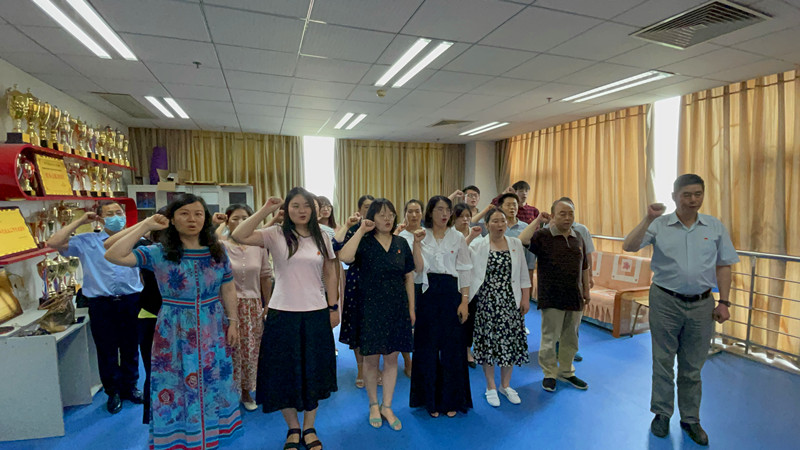 6月15日,学院党总支在党员活动室组织开展“重温入党誓词,铭记入党初心”主题活动。面对鲜红的党旗,在党总支书记郭立君的带领下,党员们庄重地举起右手,用洪亮有力的声音庄严宣誓:“我志愿加入中国共产党,拥护党的纲领,遵守党的章程,履行党员义务,执行党的决定……”,铿锵有力的誓言,传达出了每个共产党员的自豪感和使命感,展示了学院教职工党员为党和人民的事业奋斗终身的不变理想和追求。
