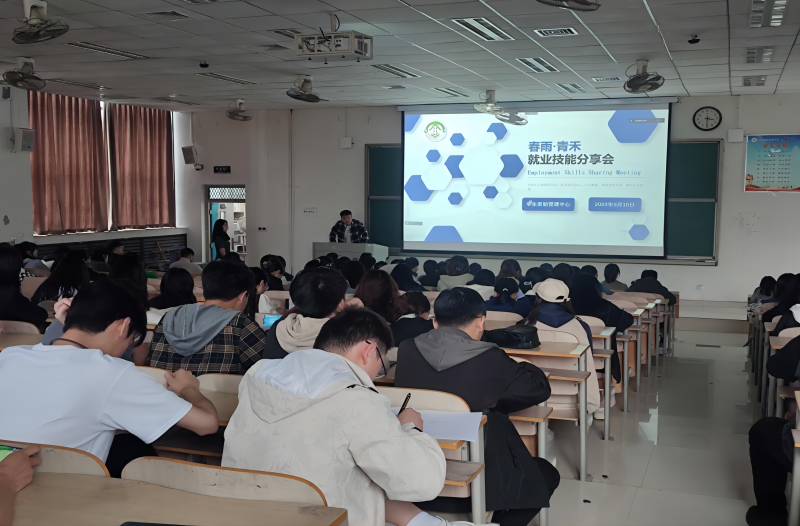 5月11日,学院“春雨·青禾”学生资助项目举办就业技能分享会,邀请分别签约中国能源建设集团天津电力建设有限公司、中铁九局集团有限公司的2019级工程造价专业应届毕业生陈松涛和高瑞杰2名同学参加分享会,吸引了全年级包括困难学生在内的300多名在校生参加。
