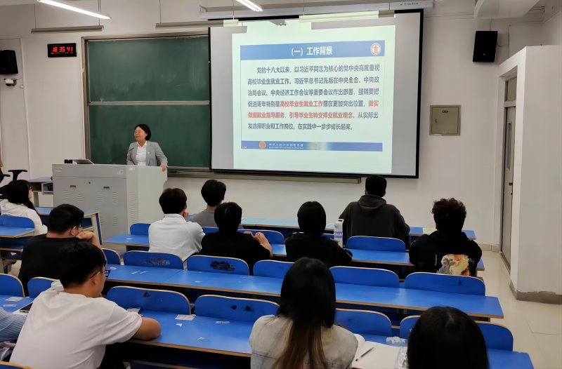 主持人郭蓓蓓老师从目前就业形势、大赛起源背景、价值导向、参赛要求、赛程安排及评分标准等方面进行详细解读,强调参加此次比赛的必要性和重要意义,启发同学们进行深度思考,引导大家树立正确的职业规划意识,调动全体学生的参赛热情。