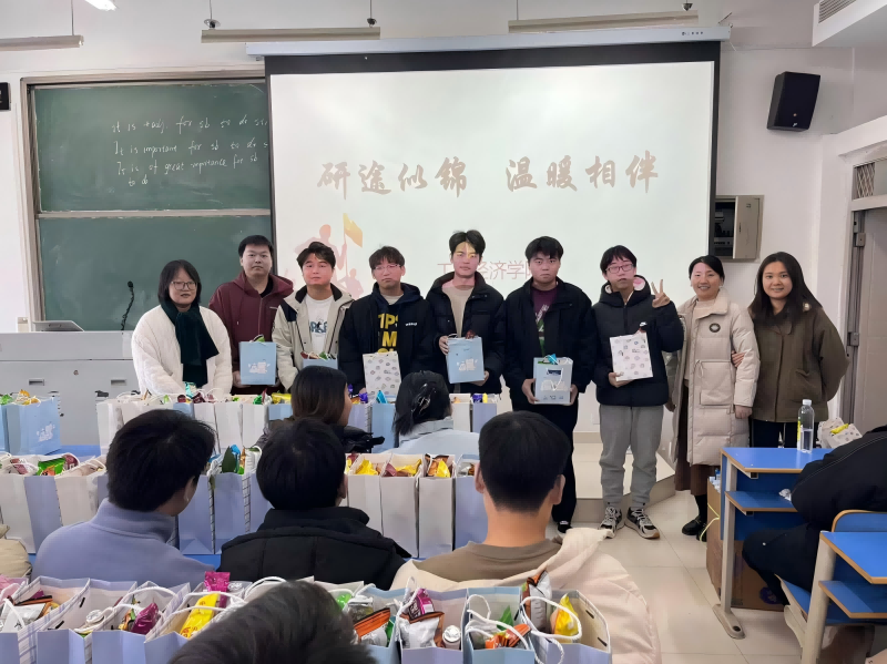 李雅鸽、王茜、毕尚美3位辅导员老师代表学院与考研学生代表进行交流,了解同学们的备考情况,向考研学子表示关心与问候,叮嘱同学们在最后冲刺阶段要保重身体,放平心态,坚定信念,预祝大家心想事成,金榜题名!活动现场,老师们为考研学子播放学弟学妹们精心录制的加油视频,送上考研温暖礼包,礼包中的每种礼品都有独特的寓意,承载着全院师生对考研学子满满的祝福与关爱。在这寒冷的冬季,学院的关怀拂去同学们的疲惫,一张张笑脸驱散了严寒,温暖了彼此。大家互相鼓励加油打气,表示定会全力以赴,调整心态,努力实现梦想。
