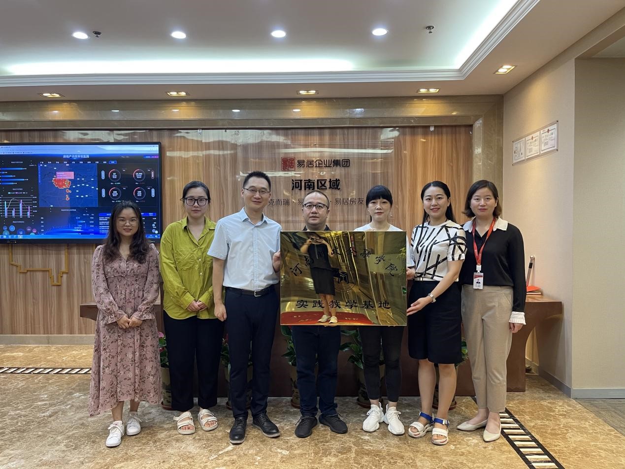 7月13日上午,pp电子游戏平台官网校外教学实践基地挂牌仪式在易居企业集团河南区域公司举行。易居企业集团河南区域公司领导胡永明总、吴秋娟、pp电子房地产经营与管理教研室主任李凯、物业管理教研室主任姜蕾、老师代表夏琪琦及郭佳丽出席了本次挂牌仪式。