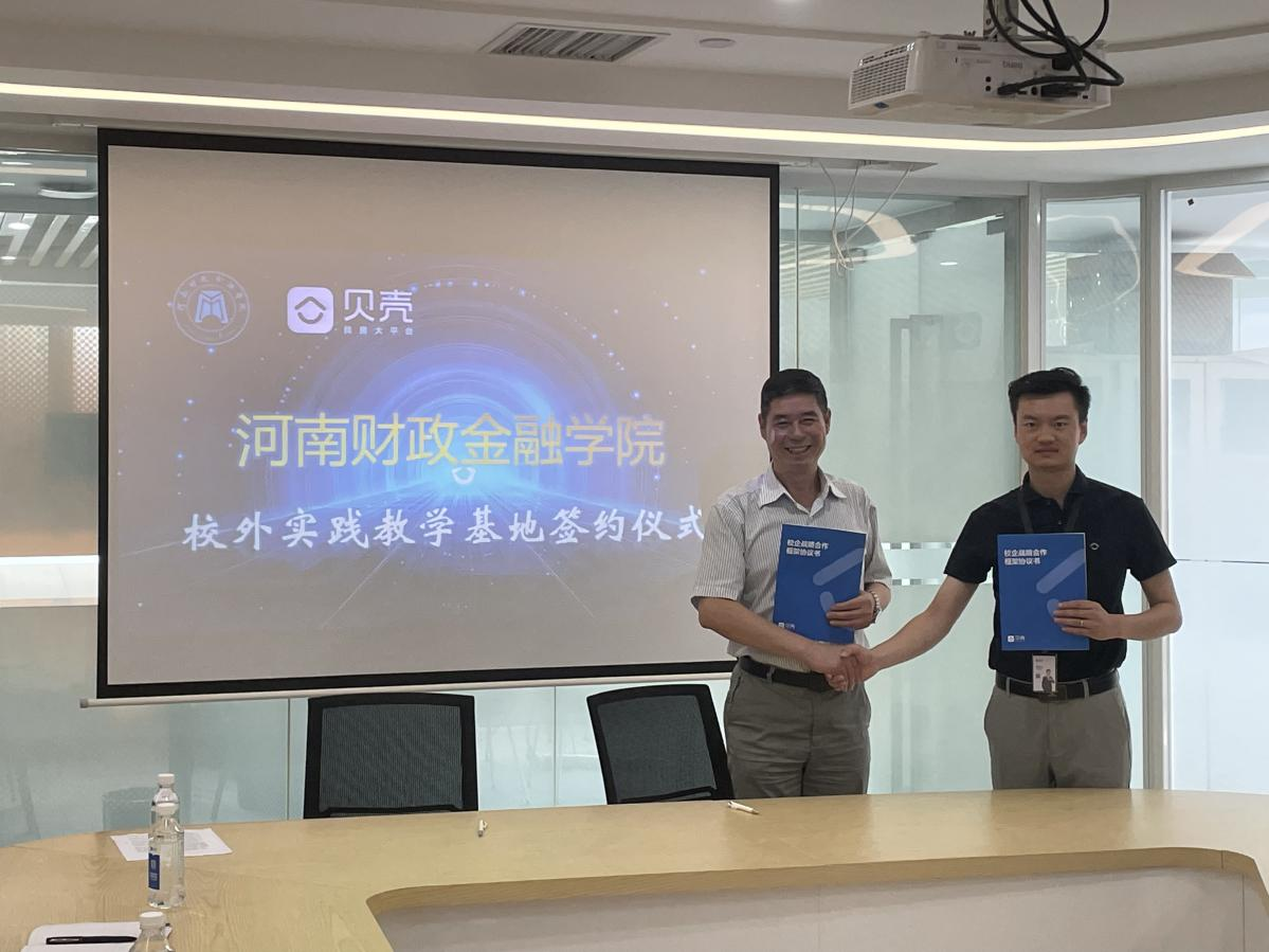 7月6日上午,pp电子游戏平台官网校外教学实践基地挂牌仪式在河南贝壳信息技术有限公司总部举行。河南贝壳信息技术有限公司校招部经理郭玉杰,pp电子pp电子游戏平台官网党总支书记郭立君和相关专业教师出席了本次挂牌仪式。