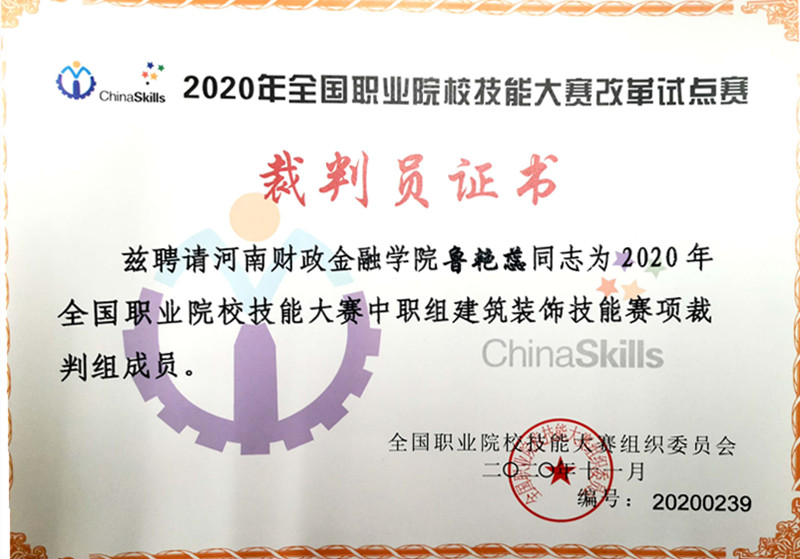 11月27日至29日,“2020年全国职业院校技能大赛改革试点赛(中职组)建筑装饰技能赛项”在青岛军民融合学院隆重举行。pp电子pp电子游戏平台官网鲁艳蕊老师应大赛组委会邀请担任该赛项裁判员。