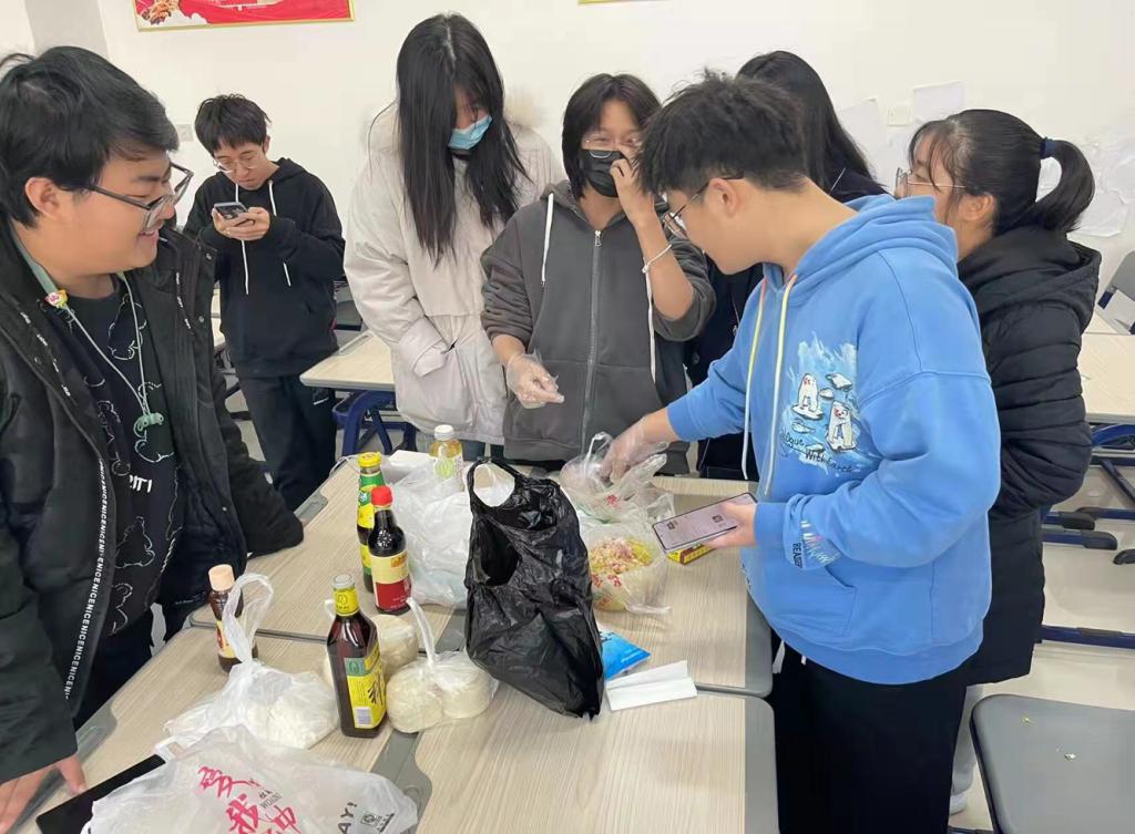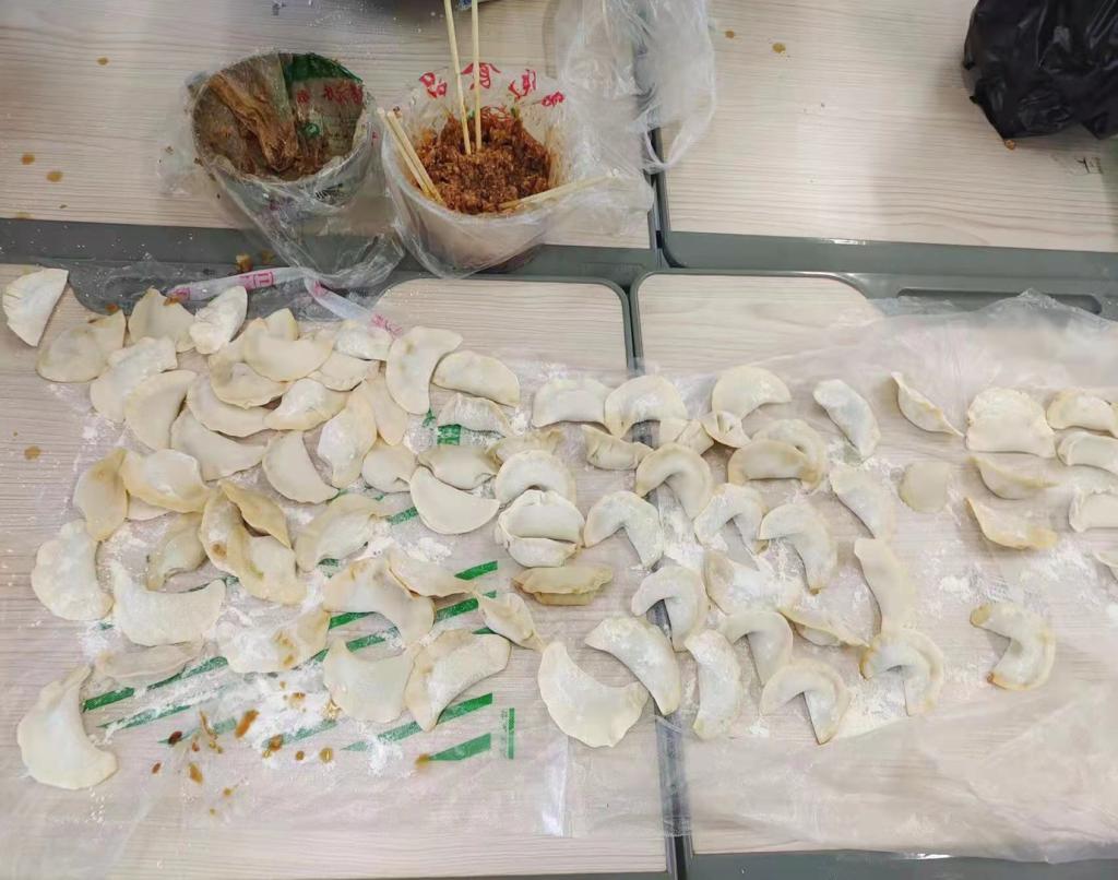 活动开始,院领导和老师们站在茶水间,分工明确,和面,擀面皮,包饺子,每个人都跃跃欲试,准备大显身手。人多力量大,老师们经验丰富,不一会两大盘饺子被整整齐齐地码在桌子上,等待进入锅中。同学们组织在班级教室里,利用活动经费购买了包饺子所需的材料,经过简单的布置和分工,便开始了忙碌,大家个个手忙脚乱,包出的饺子奇形怪状、歪歪扭扭,明显看出经验不足,但当饺子顺利出锅时,大家热情高涨,一边吃着热气腾腾的饺子一边聊着天,气氛十分欢快活泼。同学们吃着自己亲手包出的饺子,肚子满满的,心里暖暖的,别有一番风味。