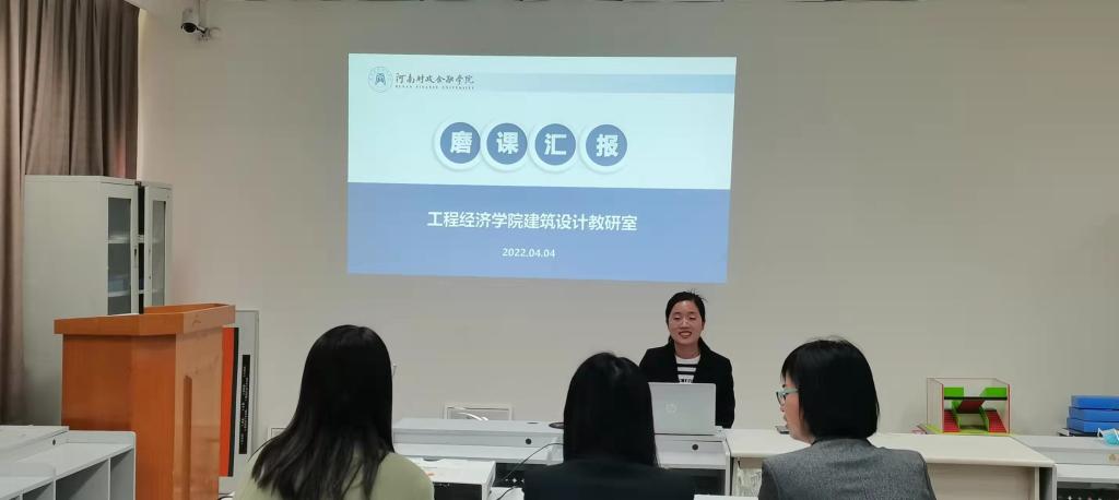 根据学校磨课要求和学院教学工作的安排,4月4日上午,建筑设计教研室在真知楼413教室开展了学术磨课汇报交流会,旨在进一步提高教学质量,强化老师们的教学素养。