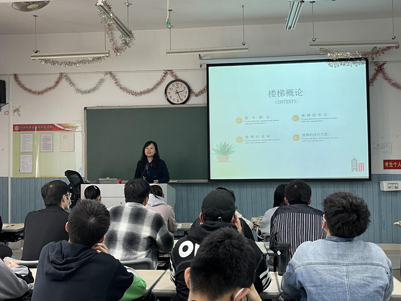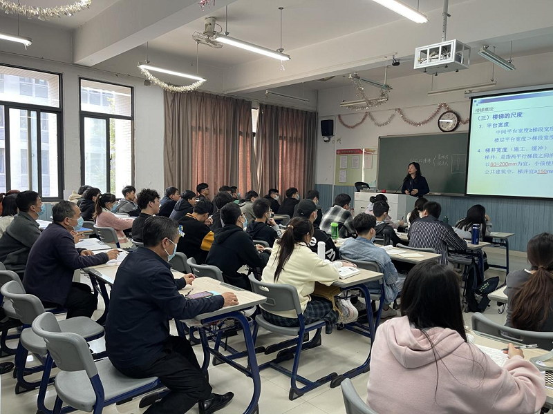 《房屋建筑学》课程2021年被评为省级一流本科课程,李旭辉老师采用现代教育技术辅助教学,从一段优秀的楼梯设计案例视频进行导学,将楼梯的基本概念引出,进而对本节课重点内容“楼梯的组成、形式及设计尺度等进行详细讲授,提出了设计不仅要做到“形式美”、还要“专业好”的理念,课程思政润物无声,授课过程中李老师思维清晰,观点明确,娴熟淡定,幽默风趣,博得师生们的阵阵点赞。教学环节设计紧凑新颖,教学内容深入浅出,课件制作精美、图片案例丰富,最后利用学习通进行随堂测验,有效地推进了线上线下混合式教学的建设成果。