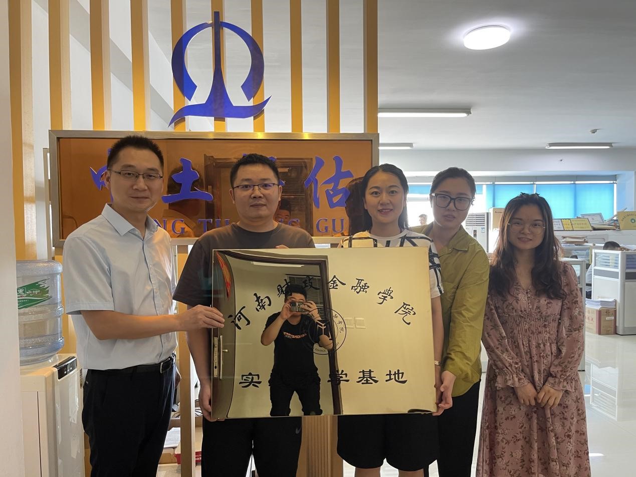 7月13日上午,pp电子游戏平台官网校外教学实践基地挂牌仪式在河南省中土地产房地产评估有限公司举行。河南省中土地产房地产评估有限公司宋必胜经理与pp电子房地产经营与管理教研室主任李凯老师、物业管理教研室主任姜蕾老师、夏琪琦老师及郭佳丽老师出席了本次挂牌仪式。