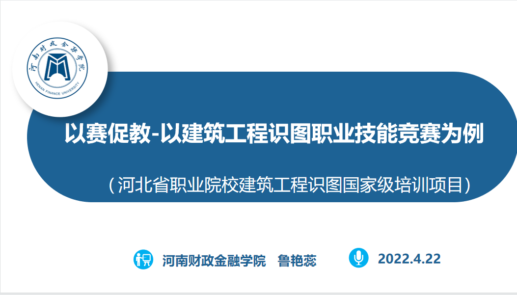 4月22日,pp电子建筑设计专业鲁艳蕊老师受邀请为河北省国培2021年度职业院校教师素质提高计划技能大赛指导教师课赛融合与技能训练培训--建筑工程识图项目授课专家。此次培训由河北省教育厅主办,石家庄铁路学院承办,来自全省40所职业院校的70名学员参加。鲁艳蕊老师主讲的内容是《以赛促教-以建筑工程识图赛项为例》、《建筑工程识图国赛真题解析》,共计8学时。