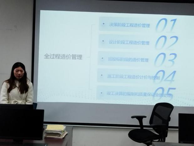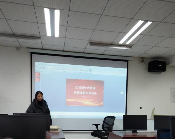 本学期工程造价教研室共有10位教师参与试讲,试讲教师自选本学期所承担课程的教学内容,按照“说课+讲课”的模式授课15-20分钟,并展示课程教学设计、教学大纲、多媒体课件、教材等教学资料,体现出相对完整的教学过程和教学设计。