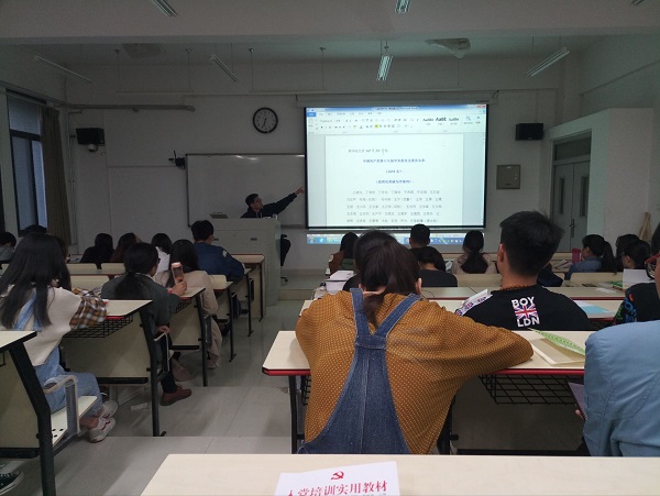 2018年4月8日晚上,我系在1103C教室开展2018年上半学年入党积极分子党课培训第三讲,本次党课由工程经济系主任孔祥慧主讲,我系61名入党积极分子参加此次党课的学习。