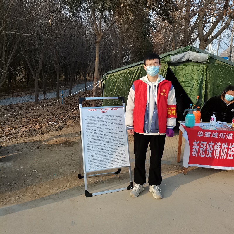 pp电子游戏平台官网辅导员安慧老师在得知社区需要志愿者时,作为一名教师党员的她第一时间报名参加,义无反顾的投入这场“战斗”中去,化身战疫先锋前往小区门口值守和在检测点开展引导志愿服务。她表示:“郑州的防疫工作现在已经到了最关键的时期,相信我们将很快打赢这场没有硝烟的战斗!我会在疫情防控一线继续坚守下去,直到假期过后重现往日的熙熙攘攘,直到学校开学上课,相信能够在校园里看到孩子们纯真的笑脸,听到朗朗的读书声。”