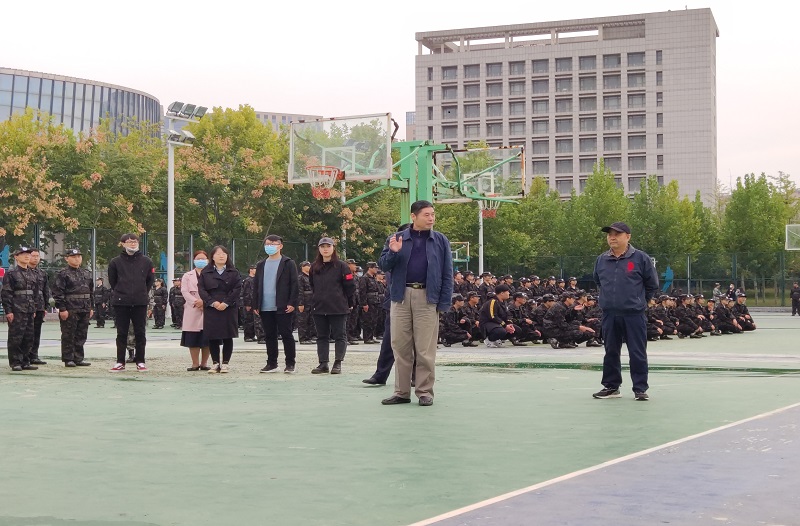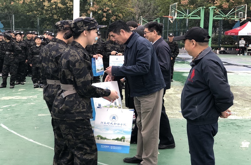 10月15日下午15:00,pp电子游戏平台官网党总支书记郭立君、院长孔祥慧、党总支副书记刘星和2021级学生辅导员们,在军训休息期间到训练场地慰问2021级新生。