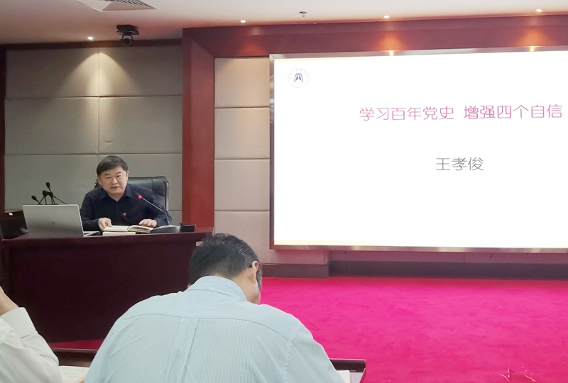 王孝俊以《学习百年党史增强四个自信》为题,结合自己在党史学习教育过程中的切身体会,围绕“中国共产党光辉历程”“伟大飞跃”“自信的源泉”三个方面展开了生动而深刻的阐述。王孝俊旁征博引、语言生动、多维视角讲述鲜活的案例,系统阐述了中国共产党在百年奋斗历程中,领导人民所取得的举世瞩目的辉煌成就,书写的波澜壮阔的历史画卷,留下的弥足珍贵的宝贵经验和精神财富。报告用大量的数据、事实和切身感受说明,我们中国共产党、中华人民共和国、中华民族是最有理由自信的,这种自信就是中国人民对中国特色社会主义道路、理论、制度、文化的高度认同及在此基础上建立起来的信念。