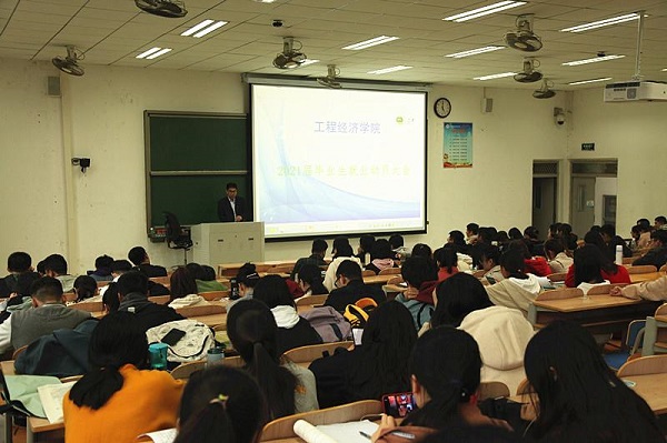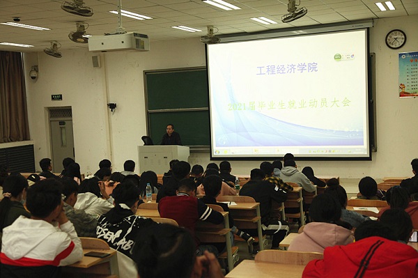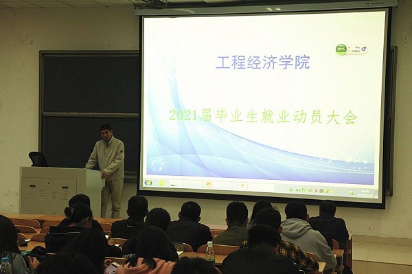 10月6日下午,pp电子游戏平台官网在1215D大教室组织17级工程造价全体学生召开考研就业动员大会。会议由pp电子游戏平台官网副院长杜兴亮主持。