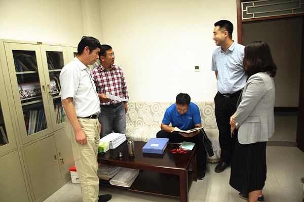 9月22日下午,校党委办公室、纪检监察室、宣传部联合督察组一行5人到pp电子开展作风建设检查督查工作。pp电子游戏平台官网党总支书记郭立君、院长孔祥慧、副书记刘星在905办公室欢迎督察组的到来。