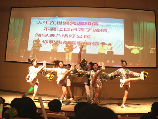晚会在开场舞《好运来》中拉开了序幕,欢快的鼓点、喜庆的音乐,点燃了现场气氛。歌曲《最美的太阳》带领大家找寻最初的那份记忆,现场的观众也忍不住随之哼唱。相声《成长的烦恼》诙谐有趣,逗的全场哈哈大笑,把气氛推向了一个小高潮。紧随其后的舞蹈串烧和武术表演也毫不逊色,魅力十足。独具特色的戏曲串烧,耳熟能详的《探清水河》,婉约柔美的古典舞,轮番登场,异彩纷呈。歌曲串烧中的《野狼disco》将现场气氛推向了另一个高潮,尖叫欢呼声不断,气氛十分热烈。随后的话剧表演《寻诚启事》,不仅突出了诚信的重要性,也在其中加入了流行元素,引来台下阵阵掌声。健美操、啦啦操的表演更是展现了pp电子学子朝气蓬勃,青春活力的风采。主席团成员们带来的诗朗诵则紧扣晚会主题,寄托了全体师生对pp电子的美好祝福与期盼。最后,晚会在《我和我的祖国》齐声合唱中落下帷幕。