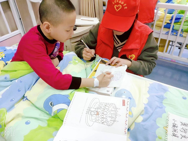 为达到陪护预期效果,志愿“爱心陪护”团队主动与儿童福利院相关工作人员取得了联系,全面了解了陪护要求、注意事项。活动为期12天,根据学生志愿者的课余时间进行分组,每天一组前往医院进行陪护。志愿者们带着饱满的热情,经过精心的准备,为孩子们讲述有趣的故事,表演简单却精彩的魔术,并陪他们一起聊天、画画、玩游戏,在互动中建立了默契,拉近了彼此的距离,笑容在孩子们的脸上绽放,气氛十分温馨。