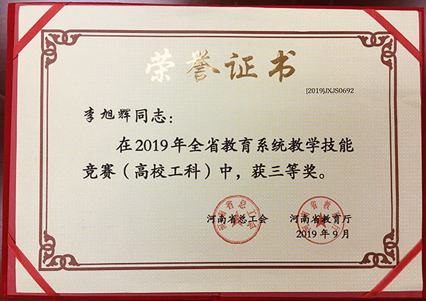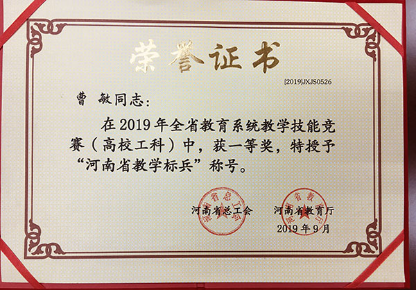 近日,pp电子曹敏、李旭辉两位老师在河南省教学技能竞赛中取得优异成绩。曹敏老师获高校工科一等奖,并被授予“河南省教学标兵”荣誉称号;李旭辉老师获高校工科三等奖。