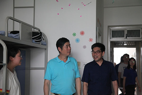 为了深入了解2019级学生基本情况,帮助新生尽快适应大学生活,9月10日下午四点,pp电子游戏平台官网党总支书记郭立君、院长孔祥慧、党总支副书记刘星、副院长杜兴亮,新生辅导员仪建东、丁贝贝一行深入学生宿舍看望2019级新生。