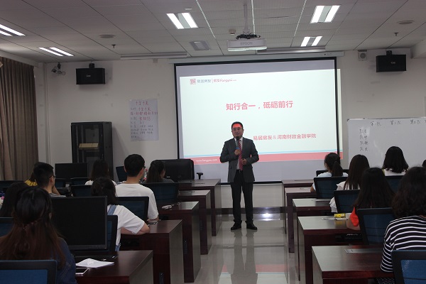 5月26日,我系校企合作企业易居房友公司开封、洛阳城市负责人裴隆峰先生在真知楼501B机房为我系2016级房地产经营与管理专业学生授课。裴总从房地产行业透视、职业解析及大学生房地产职业生涯规划、商务礼仪、新房联动等几个板块给学生上了一堂别样的房地产经纪课程。5月27日,在企业的精心安排和老师的协调组织下,易居房友裴总、房地产教研室老师马建辉、姜蕾带领该班学生分别赴易居企业集团中原大区办公楼、银基国际旅游度假区售楼处、融创观澜壹号售楼处进行参观调研。学生更直观了解到房地产经纪人员的工作环境、职业素养和职业技能,从文旅和住宅两类地产项目的调研中进一步熟悉了新建商品房销售流程、售楼处案场布置和管理、营销方案制定等内容。