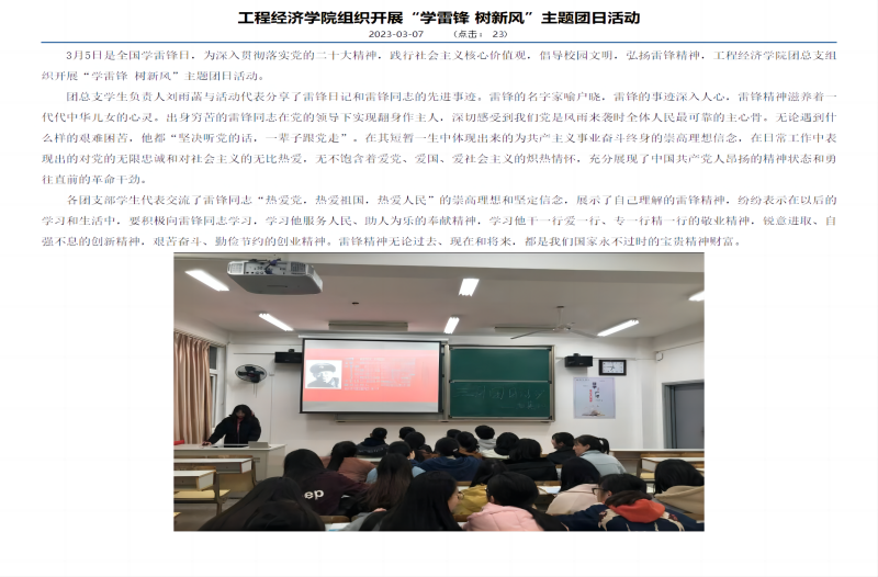 3月5日是全国学雷锋日,为深入贯彻落实党的二十大精神,践行社会主义核心价值观,倡导校园文明,弘扬雷锋精神,pp电子游戏平台官网团总支组织开展“学雷锋,树新风”主题团日活动。
