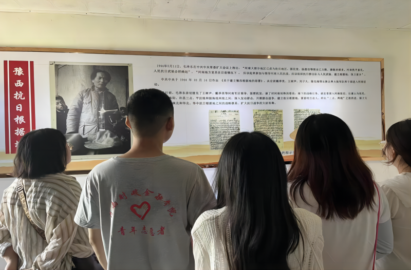 活动期间,实践团队走进新安豫西抗日根据地纪念馆。听着讲解员的讲述,队员们仿佛置身于那个战火纷飞的年代。在一幅幅图片、一件件文物、一段段文字前,大家切身感受到了革命前辈崇高的革命理想、坚定的革命意志和大无畏的革命精神,为豫西抗日革命根据地军民顽强抗日的英雄事迹所震撼,为中华儿女在抗日战争中不屈不挠的斗争精神所折服。大家久久伫立在革命英烈榜前,向抗日英雄致敬,深刻追思先烈伟绩;在庄严的党旗下,重温入党誓词,感悟初心使命。少有担当多壮志,青春聚力正当时。通过现场教学,同学们经历了一次思想的洗礼,纷纷表示要深刻领会习近平总书记的谆谆教导,切实担负起时代赋予的历史使命,让红色基因历久弥新、永放光芒,让革命事业薪火相传、血脉永续。