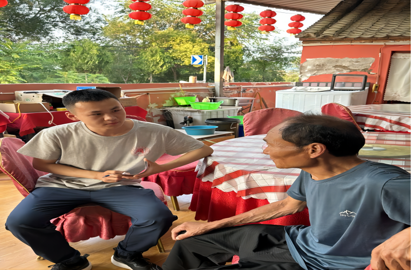 活动第6天,暑期社会实践团全体成员共同前往抗战老兵家中进行慰问。走访过程中,大家跟老人们拉家常、问冷暖,关心他们的身体健康状况,聆听英雄们的抗战故事,感受前辈们满腔的爱国情怀。当老人们诉说起和战友浴血沙场、保家卫国的经历时,在场队员无不为之动容。一个老人就是一个故事,一个故事代表着一段历史,“唯有留住红色记忆,方能凝聚未来前行力量”。面对面的交流方式让学子们更近距离、更亲切地感受到了老战士的家国情怀,了解和平年代的来之不易,激励同学们进一步坚定理想信念,努力学习专业本领,脚踏实地,勇于担当,为中华民族伟大复兴贡献青春力量。