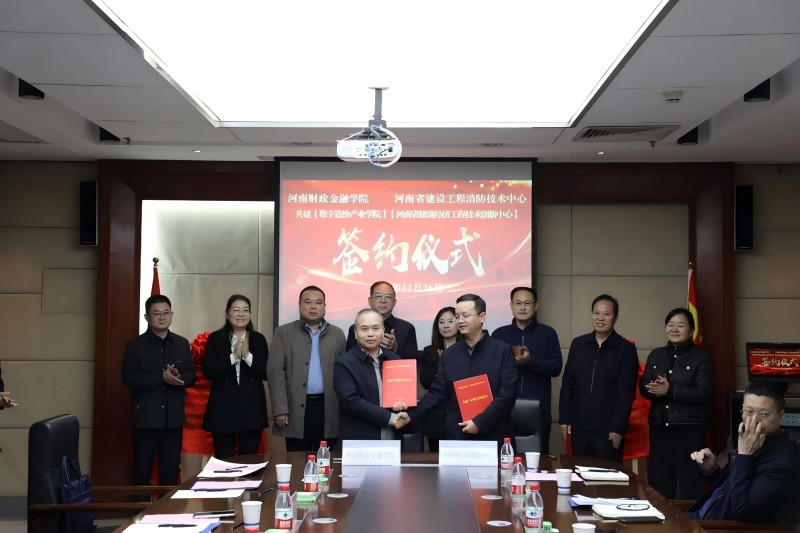 11月26日上午,pp电子与河南省建设工程消防技术中心共建“数字造价产业学院”“河南省建筑经济工程技术创新中心”合作协议签约暨揭牌仪式在象湖校区举行。副校长杨伯坚,省住房和城乡建设厅科技与标准处处长姬媛媛、二级调研员康增斌,河南省建设工程消防技术中心主任孙培永,副主任张天峰,总工程师徐佩莹及省注册造价工程师协会、省房地产估价师与经纪人协会等14家企业负责人出席仪式。pp电子校地校企合作处、教务处、pp电子游戏平台官网负责人参加仪式。