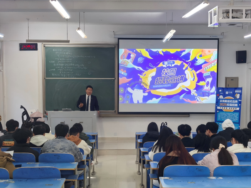 11月26号下午,河南贝壳信息技术有限公司(以下简称贝壳公司)在弘毅楼3101C教室举办专场招聘会,2021级房地产开发与管理专业全体毕业生参加。