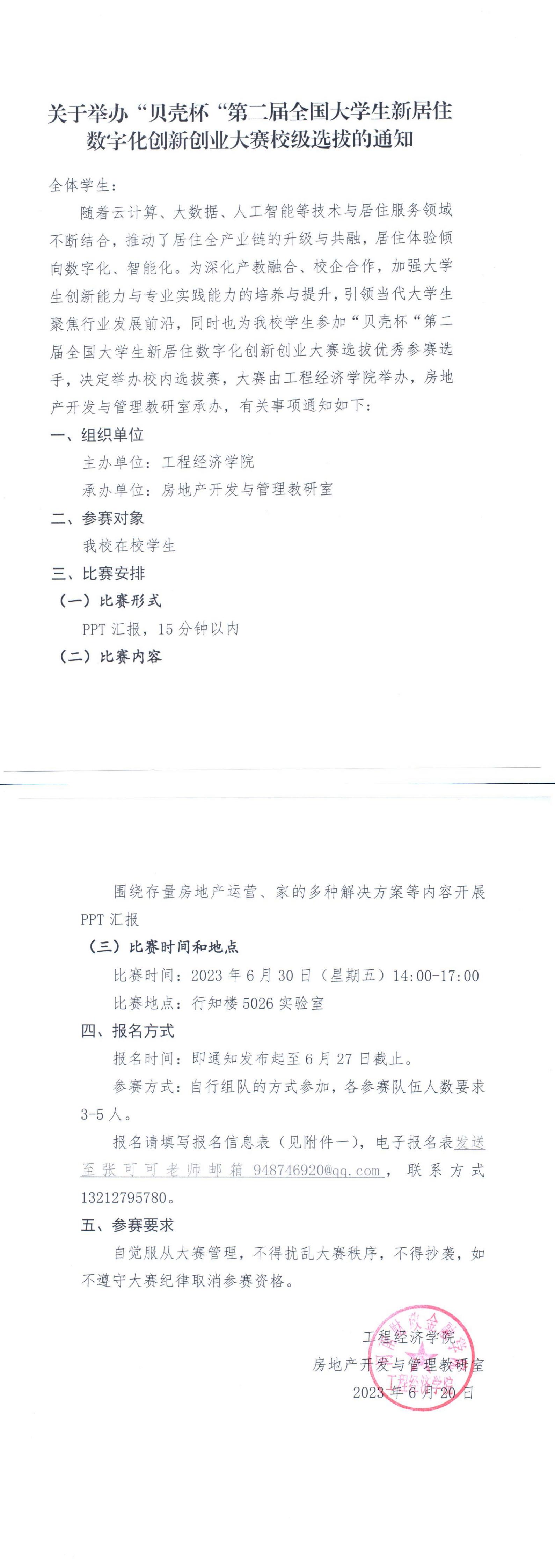 关于举办“贝壳杯”第二届全国大学生新居住数字化创新创业大赛校级选拔的通知