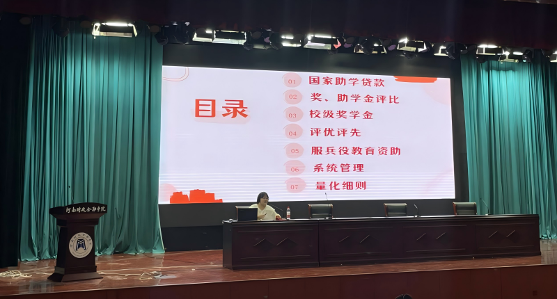 会上,李老师从高校学生资助政策体系出发,详细介绍了国家奖学金、国家励志奖学金、国家助学金的申请条件、审核流程、材料要求等内容。针对生源地贷款、校园地贷款的区别、申请条件、申请流程、还款渠道和还款政策等做了深入解读,教育大家要诚信贷款、诚信还款、诚信做人。重点说明了评奖评优量化细则加减分条件,激励同学们在校期间要好好学习,积极参加校内外竞赛活动,努力成为一名“多边形人才”。