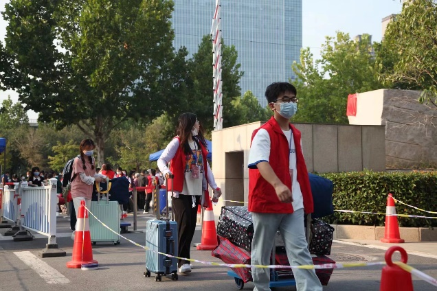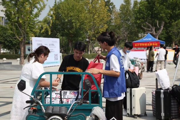 从迎新点到新生宿舍,处处都能看到迎新志愿者忙碌的身影。许多志愿者从学校大门口到学生宿舍一天往返十几趟。
