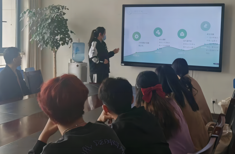 指导老师介绍了创新创业“互联网+”大赛参赛项目要求、参赛形式、比赛分组、校内选拔时间安排等。项目汇报人对参赛项目进行了讲解和PPT展示。指导老师对参赛项目展示过程中暴露出的问题进行了深入细致讲解指导。