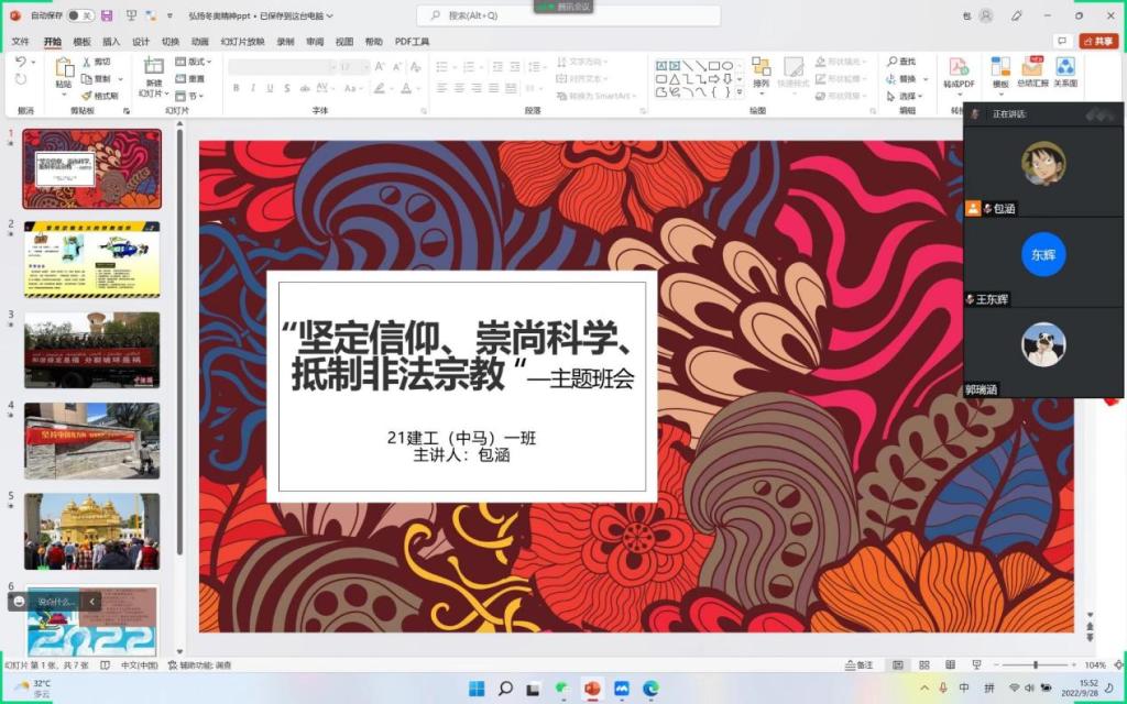 为深入学习贯彻全省宗教工作会议精神,宣传民族宗教政策法规相关内容,进一步扩大民族宗教政策法规在学生群体中的知晓度和覆盖面,9月28日至10月8日,pp电子党总支组织以班级为单位开展“民族宗教政策法规宣传月”主题班会活动。