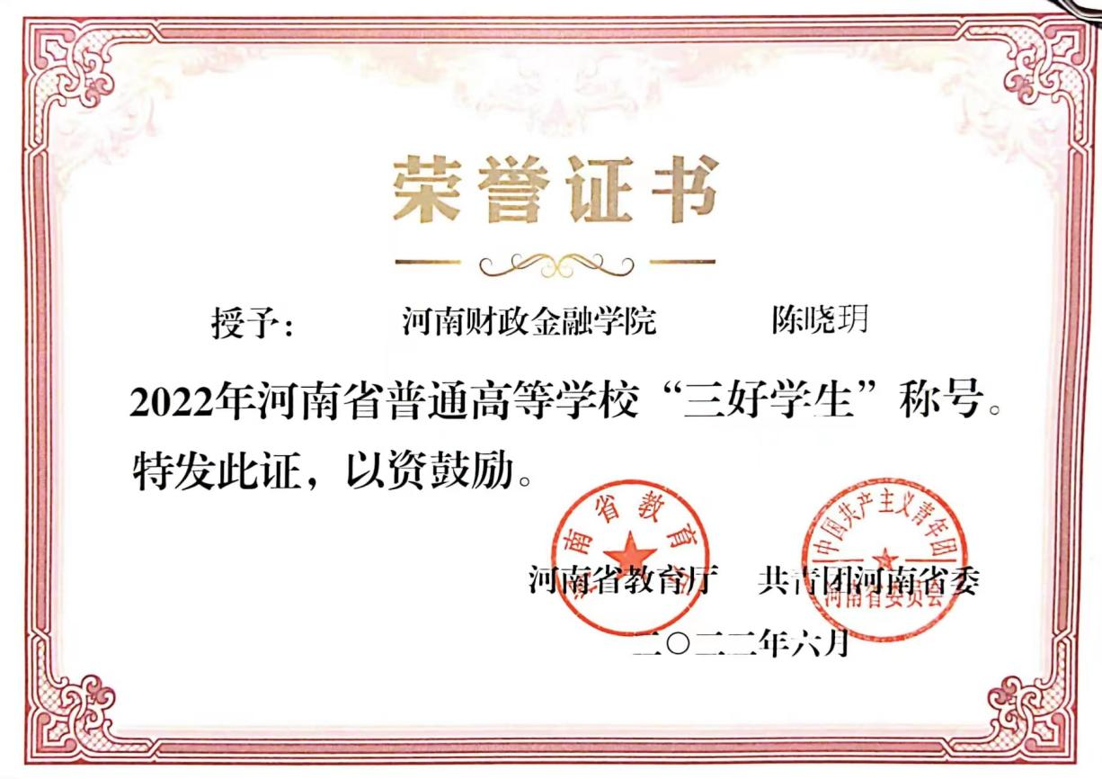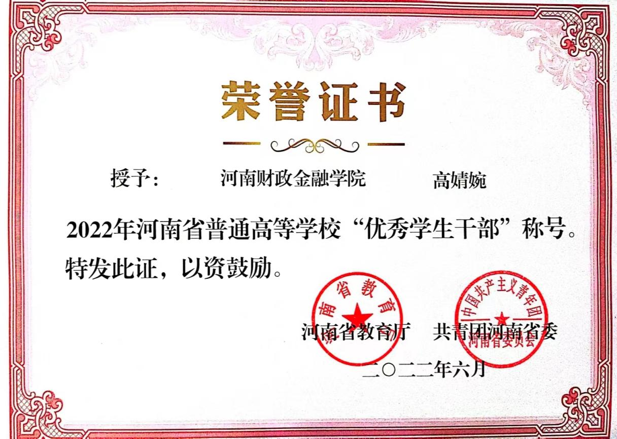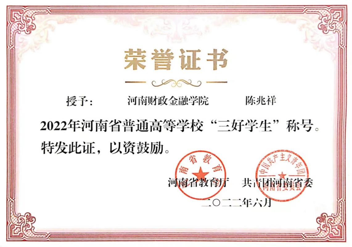 根据《河南省教育厅 共青团河南省委关于公布2022年河南省普通高等学校三好学生、优秀学生干部和先进班集体名单的通知》(教学〔2022〕195号)文件精神,我院莫伊迪、余彬、牛绿原、陈晓玥、陈兆祥5名同学荣获省级“三好学生”荣誉称号,高婧婉获省级“优秀学生干部”荣誉称号,2020级工程造价2班被评为省级“先进班集体”。