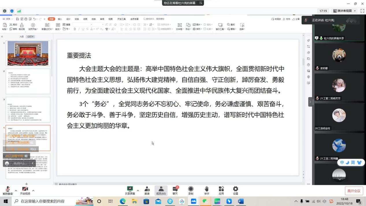 通过学习,全体学员对党的二十大报告精神有了更加深刻的理解,纷纷表示今后要把学习二十大报告精神落实在具体学习工作行动中,不负习近平总书记对青年人的殷殷嘱托,为实现中华民族伟大复兴中国梦贡献青春力量。