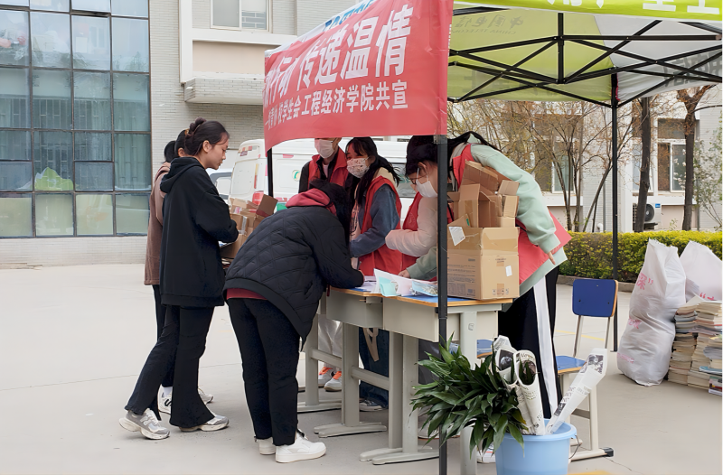 活动在校园内开设三处捐赠点,分别为一号学生宿舍楼楼前、菜鸟驿站附近以及餐厅南门。广大师生将旧衣、旧书、旧纸箱带到捐赠活动现场,献上自己的一份爱心。
