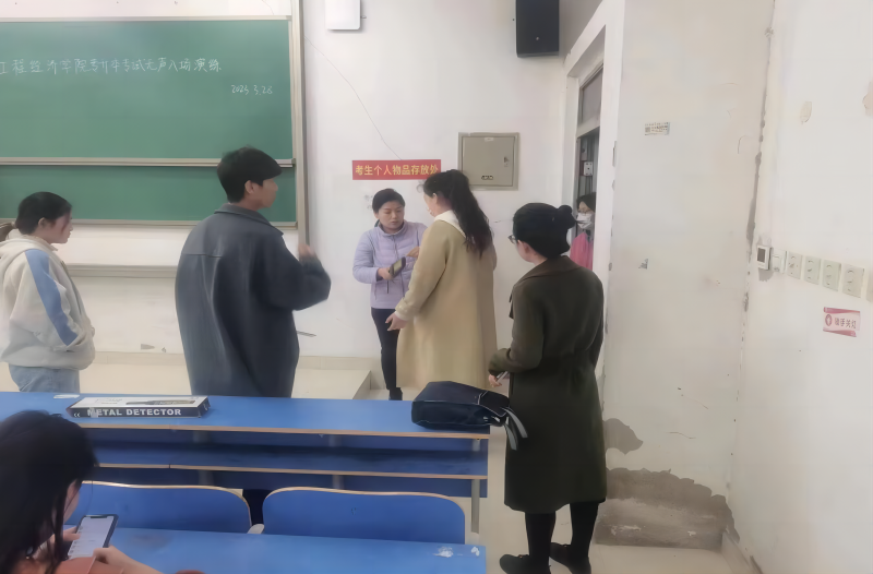 演练开始之前,老师们向在场考生传达了专升本考试中的注意事项,详细解读了无声入场考试的相关政策,对考试当天不允许携带无关的物品等注意事项进行全面讲解。随后,按照要求,严格、规范、认真的对每一位考生进行检查,并督促不符合要求的考生及时调整。