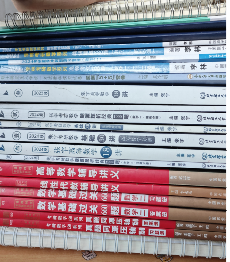 12月初试结束,回图书馆整理了一下所有高数辅导教材,才明白一句话“水滴石穿”,曾经做的每一道数学题都有它存在的意义。