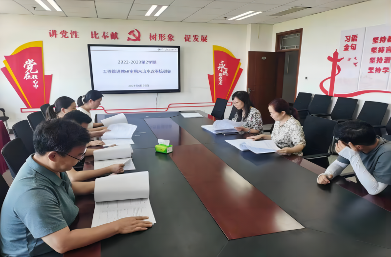 为统一规范试卷阅卷和归档要求,确保本学期期末考试阅卷工作圆满完成,6月30日,工管教研室在办公楼711会议室开展期末流水阅卷培训工作,工管教研室全体教师参加了此次会议。