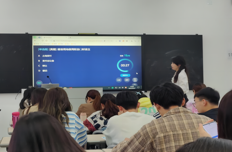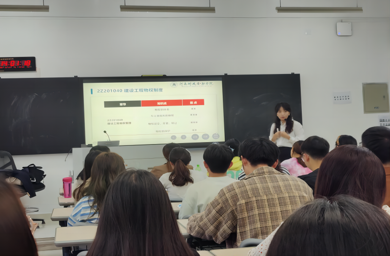 第5节在弘毅楼3304教室观摩王璐老师主讲的《建设法规》课程,授课班级为21工造3班。《建设法规》是工程造价专业的专业选修课程,是“一级建造师”的必考课程。王璐老师采用线上线下混合教学模式,结合课本、PPT、学习通,进行互动式教学。课前,王璐老师带领同学们回顾上节课的知识点,衔接课程内容,调动学生积极性。课上,王璐老师融入案例教学,课堂内容生动有趣,学生听课状态良好,师生互动充分,并以知识点为单元进行课堂习题练习。