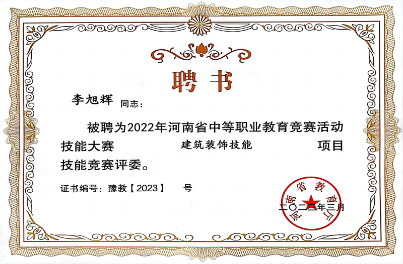 3月31日至4月2日,由河南省教育厅主办、河南省教育科学规划与评估院承办的2022年河南省中等职业教育技能大赛“土木建筑类建筑装饰技能”赛项在河南省工业学校成功举行。大赛共有来自省内11支参赛队22名选手参加。pp电子游戏平台官网李旭辉老师受邀担任大赛裁判员。