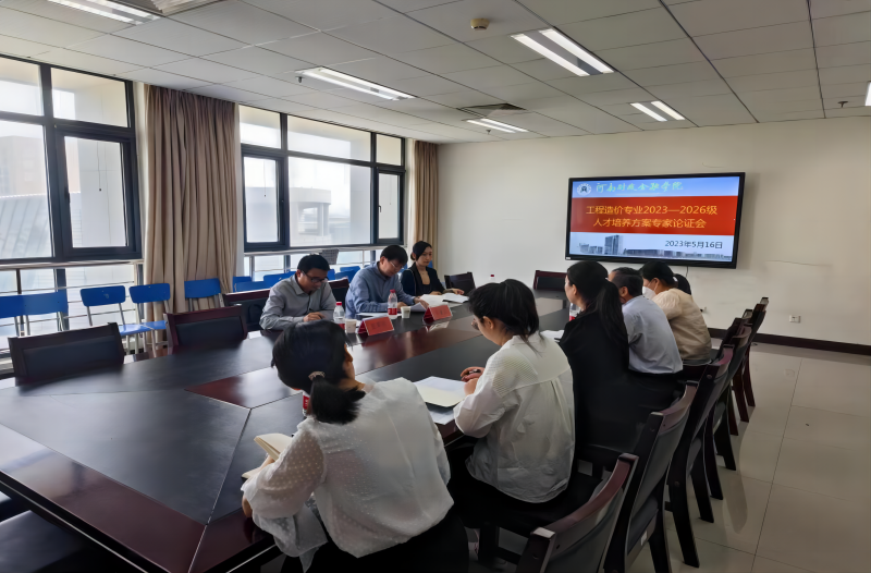 依据《pp电子游戏平台官网本科专业人才培养方案指导意见(2023版)》(豫财院〔2023〕120号)《普通高等学校本科专业类教学质量国家标准(2018)》等要求,工程造价教研室于5月16日在pp电子游戏平台官网会议室召开工程造价专业2023版人才培养方案专家论证会,中恒信工程造价咨询有限公司河南分公司陈智法、中和刚大工程顾问有限公司张军校应邀参加论证会,pp电子游戏平台官网院长杜兴亮、工程造价教研室主任王领以及教师代表参加会议,线上腾讯会议专家论证会同步进行。
