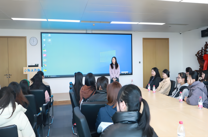 本次活动主要内容是参与工程实际项目。师生一行受到该公司总裁办主任杨阳、业务发展平台第9项目分部总监乔传钦、人力资源总监孙巍的热情接待。总裁办主任杨阳首先介绍了海天的发展历程、企业文化,乔传钦总监介绍了该公司的工程造价业务要求及工作流程,人力资源总监孙巍就学生关心的就业问题与学生开展互动和解惑。随后,学生在工程项目人员的指导下,对接了实际项目的工作要求、工作内容和工作交付标准,认领了毕业实习工作任务。