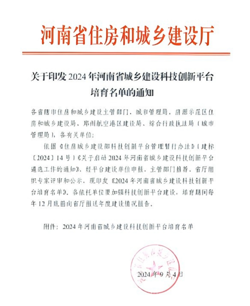 近日,河南省住房和城乡建设厅发布《关于印发2024年河南省城乡建设科技创新平台培育名单的通知》,pp电子游戏平台官网与河南省建设工程消防技术中心联合申报的“河南省建筑经济工程技术创新中心”成功获批河南省城乡建设科技创新平台。